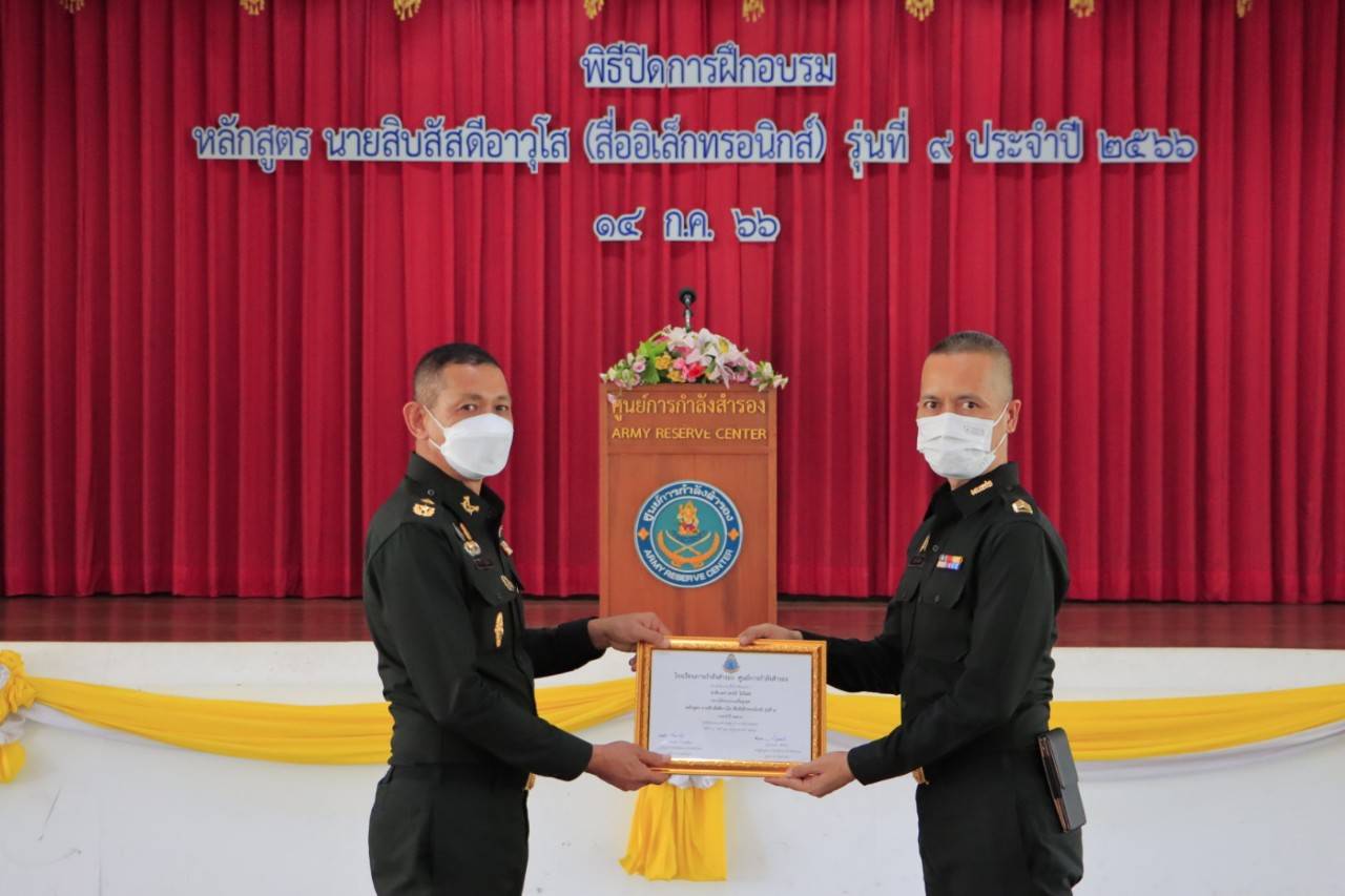 เมื่อวันศุกร์ที่ 14 กรกฎาคม 2566 เวลา 10.30 น. พล.ต.คณพล บำรุงเมือง ผบ.ศสร. เป็นประธานพิธีมอบประกาศนียบัตรและปิดการฝึกอบรม หลักสูตร นายสิบสัสดีอาวุโส (สื่ออิเล็กทรอนิกส์) รุ่นที่ 9 ประจำปี 2566 ณ หอประชุม ศสร. โดยมี พ.อ.เสกสรรค์ เสืออิ่ม รอง ผบ.รร.กสร.ศสร. พร้อมด้วยคณะผู้บังคับบัญชาของหน่วยร่วมให้การต้อนรับและเข้าร่วมพิธีอย่างพร้อมเพรียง